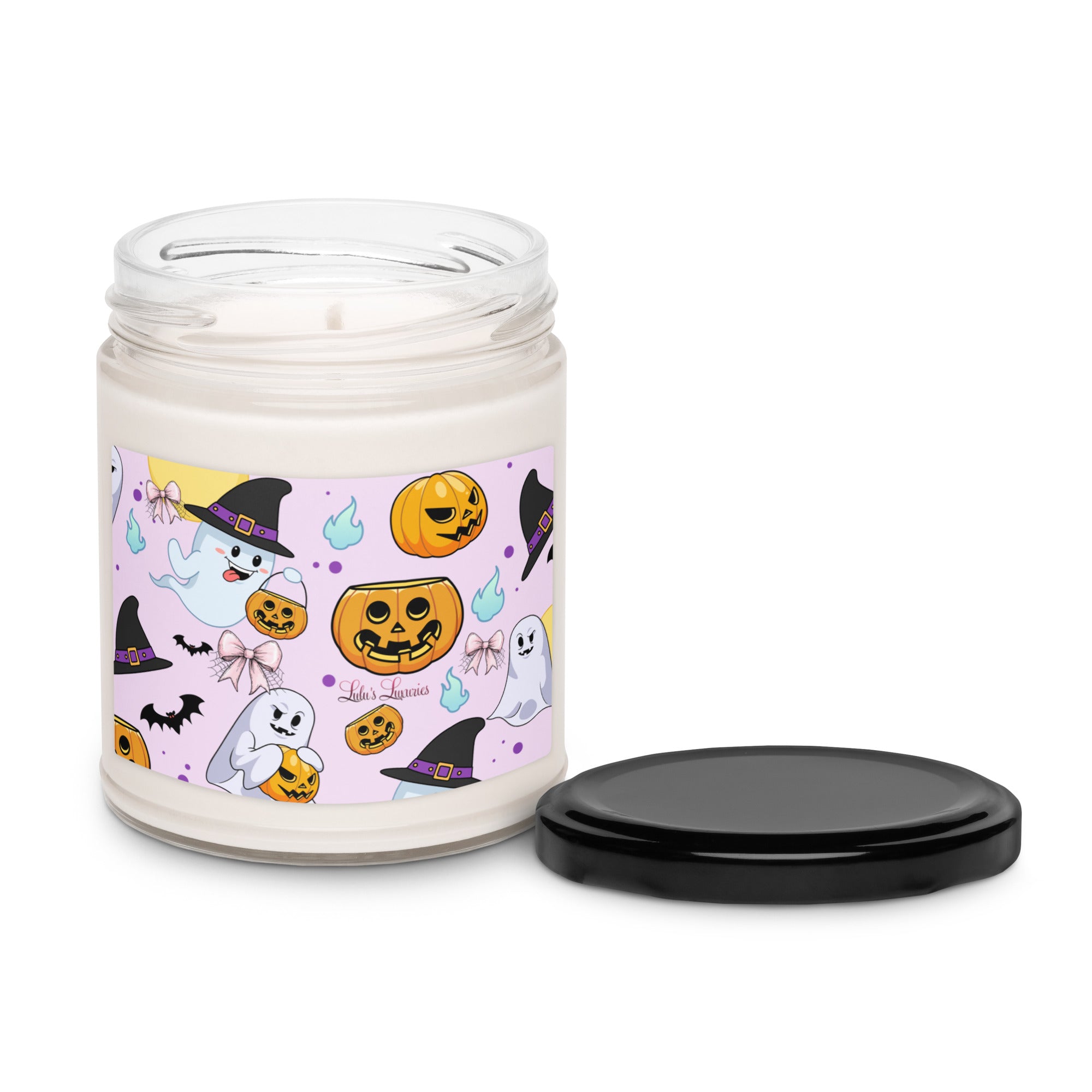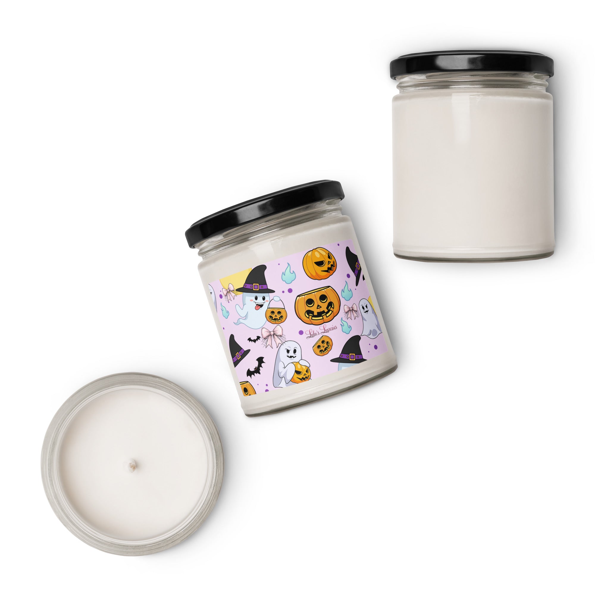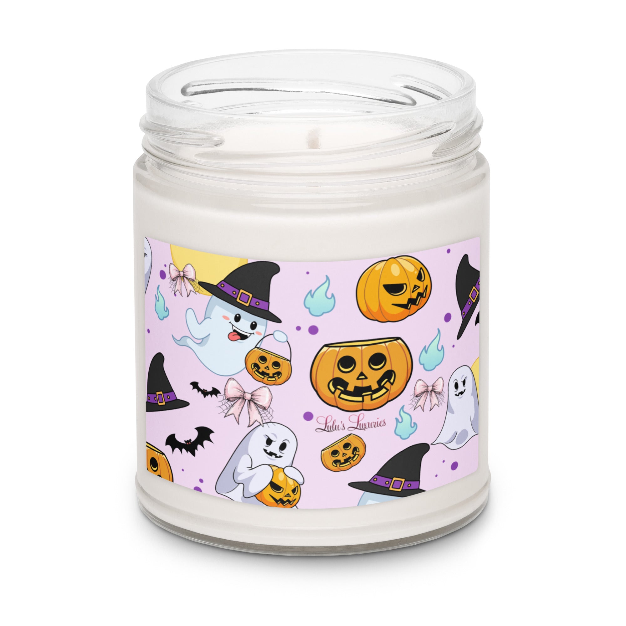The 'Ghost Glam Pink' Scented Soy Candle offers a delightful twist on traditional Halloween decor with its charming pink bows, jack-o-lantern pumpkins, witch’s hats, ghosts, and bats. Crafted from soy wax, this candle provides a clean, even burn while filling your space with a subtle, inviting fragrance. Ideal for creating a festive yet stylish atmosphere, it combines playful Halloween spirit with a touch of elegance perfect for any seasonal celebration.