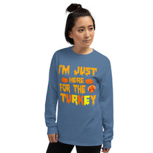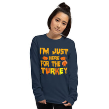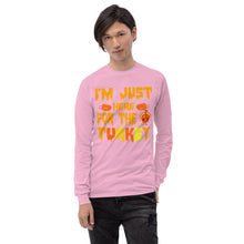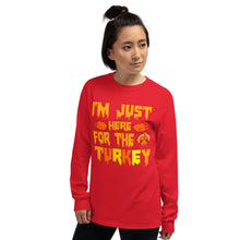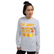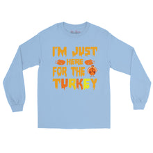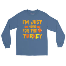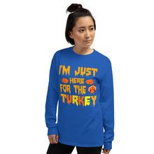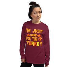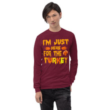 Need a fun and comfortable shirt to wear to Thanksgiving Day dinner? This long sleeve shirt is perfect for men and women and a fun way to celebrate turkey day dinner all November. Add this wardrobe essential to your collection, and have a great to-go option for a casual look, or a relaxed business outfit. 'I'm Just Here For The Turkey' Men's Long Sleeve Shirt can be worn by women and men and is available in multiple colors. Have fun and be silly this Thanksgiving!