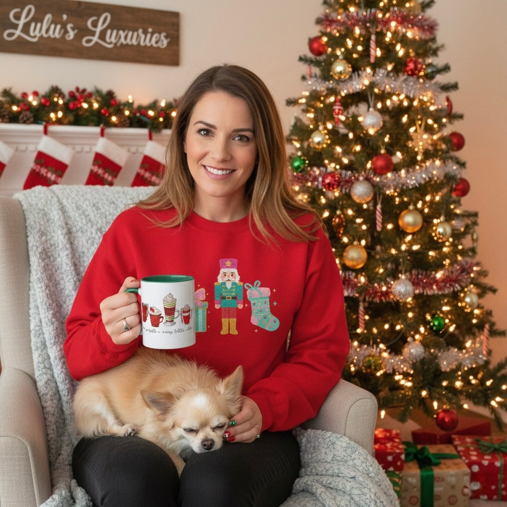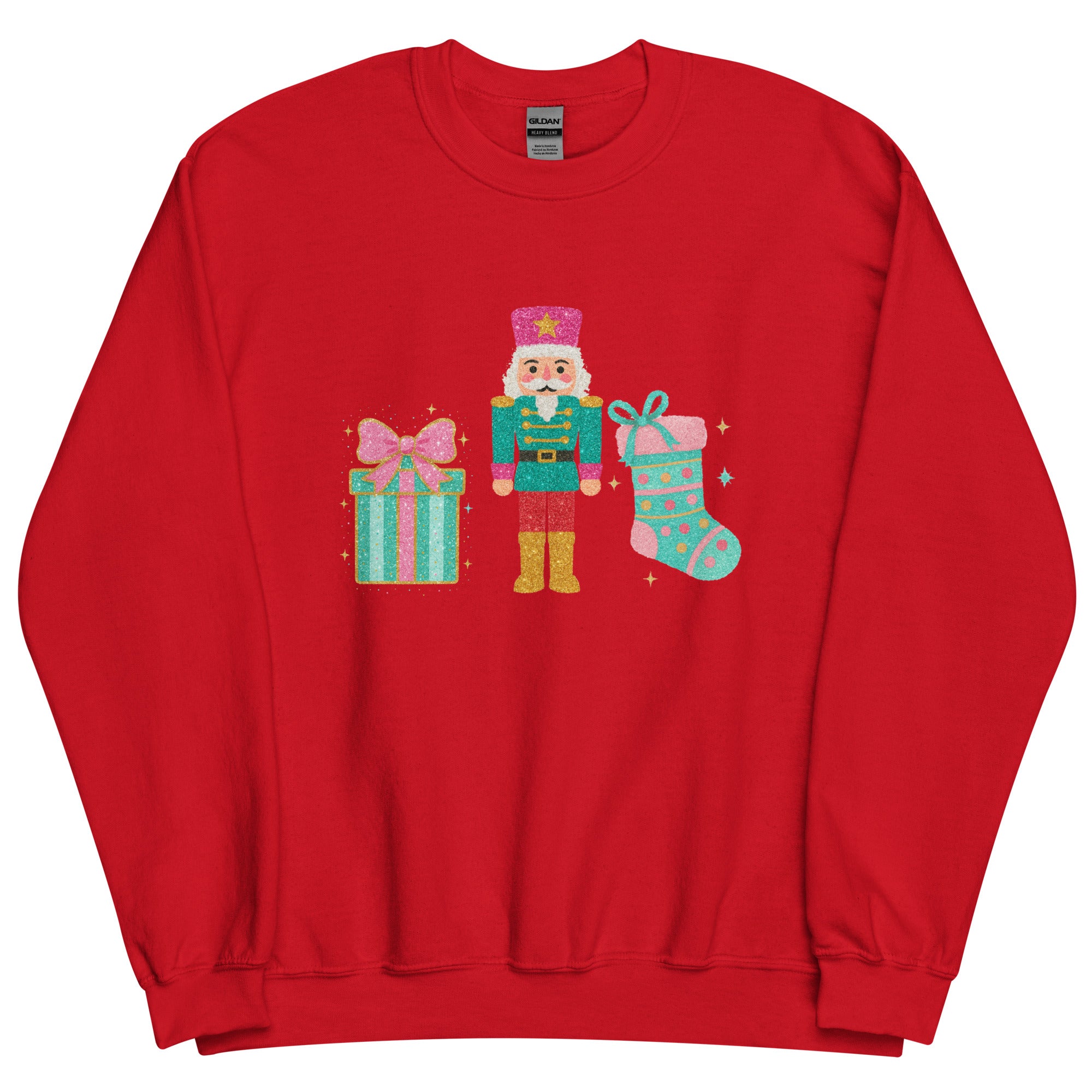 Embrace the festive spirit with this 'Holiday Magic Sparkle' Unisex Sweatshirt, designed to deliver comfort and seasonal charm. Featuring vibrant illustrations of a present, nutcracker, and Christmas stocking, this piece captures the warmth and wonder of holiday celebrations. The relaxed fit makes it ideal for cozy gatherings, while the eye-catching artwork brings festive joy to your wardrobe. Perfect for anyone seeking to celebrate the magic of the season in style and comfort.