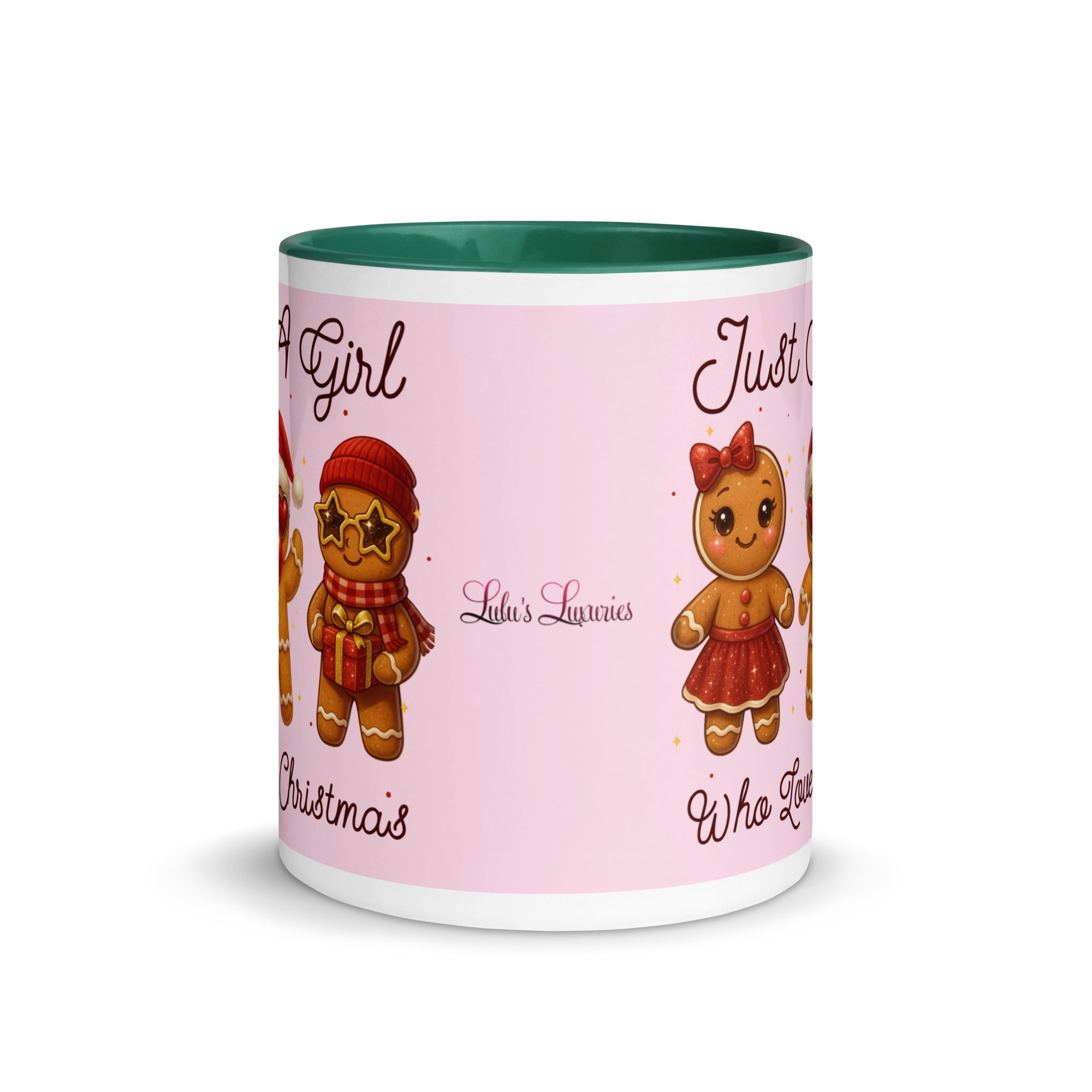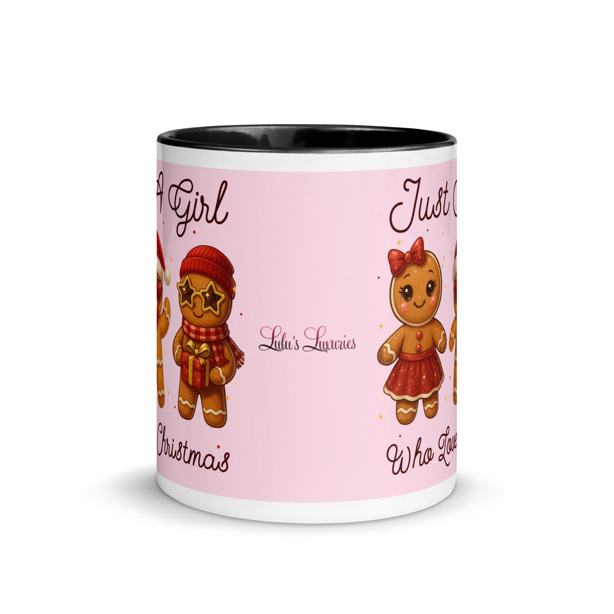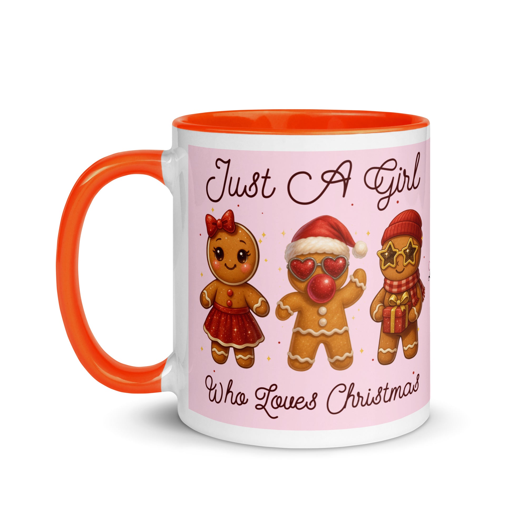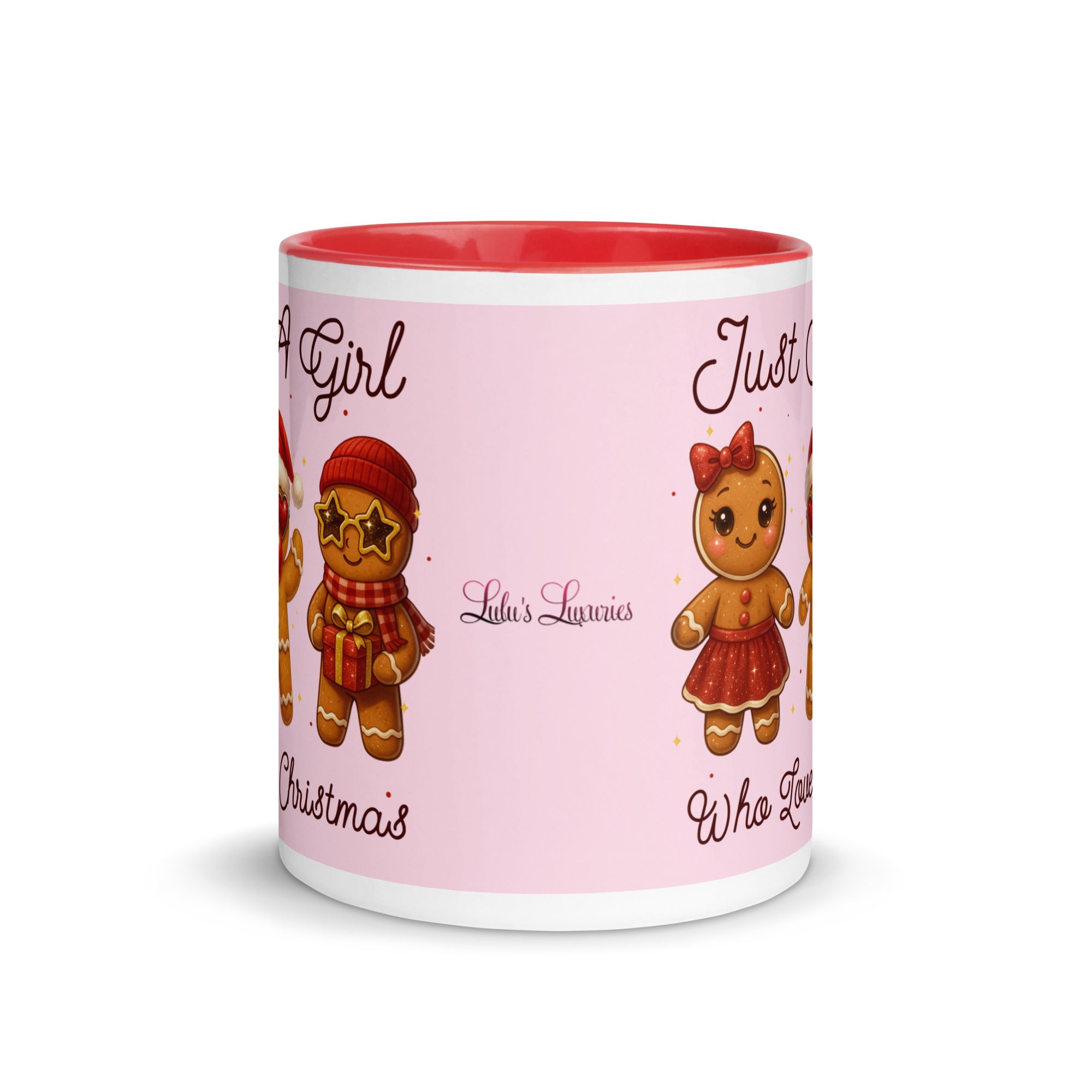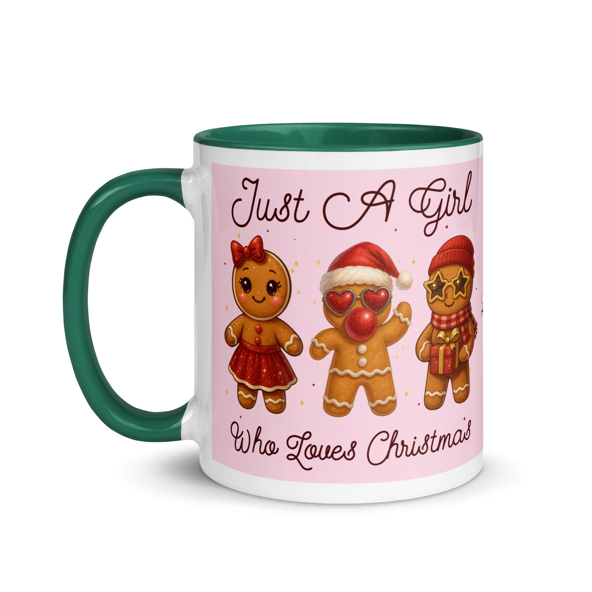 Celebrate the season with this charming mug featuring a soft pink background adorned with festive gingerbread characters. The playful "Just A Girl Who Loves Christmas" message wraps around both sides, making it perfect for holiday coffee breaks or as a thoughtful gift for gingerbread enthusiasts. The colored interior adds a delightful pop of personality to every sip. Ideal for spreading Christmas cheer throughout the season.