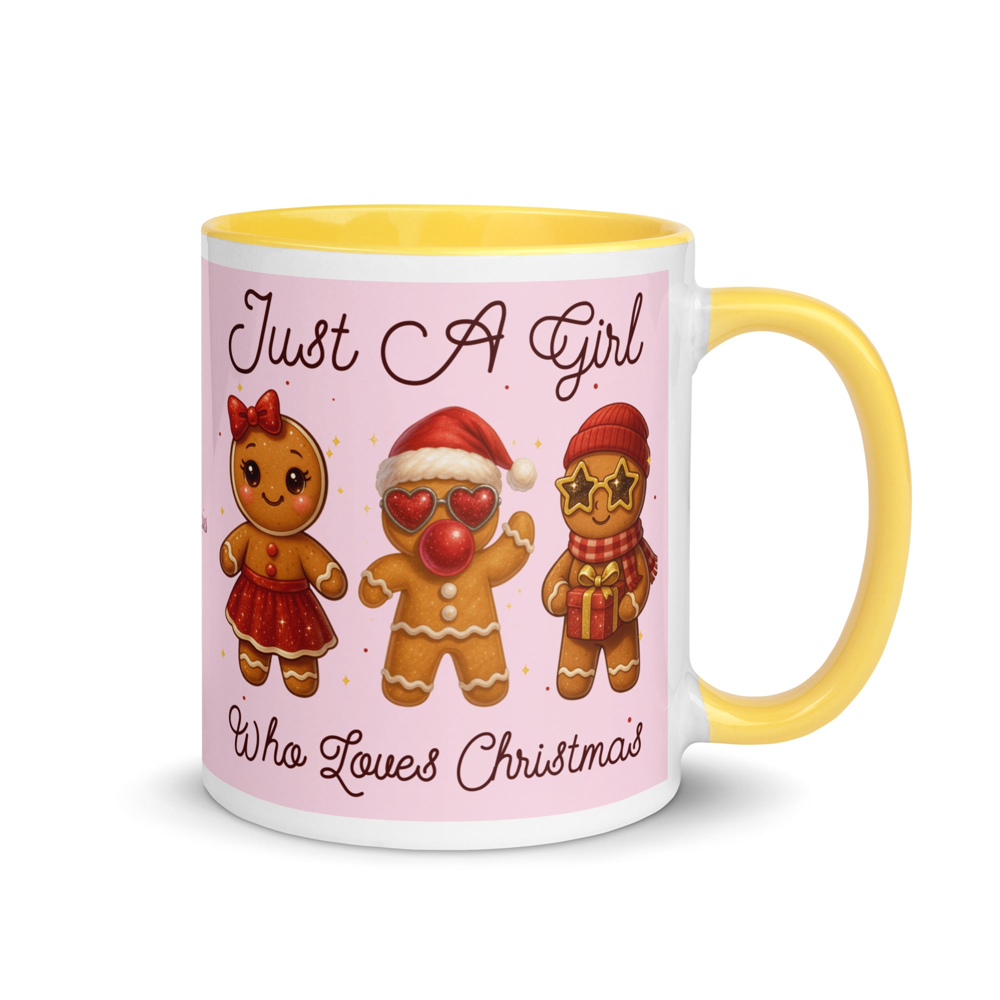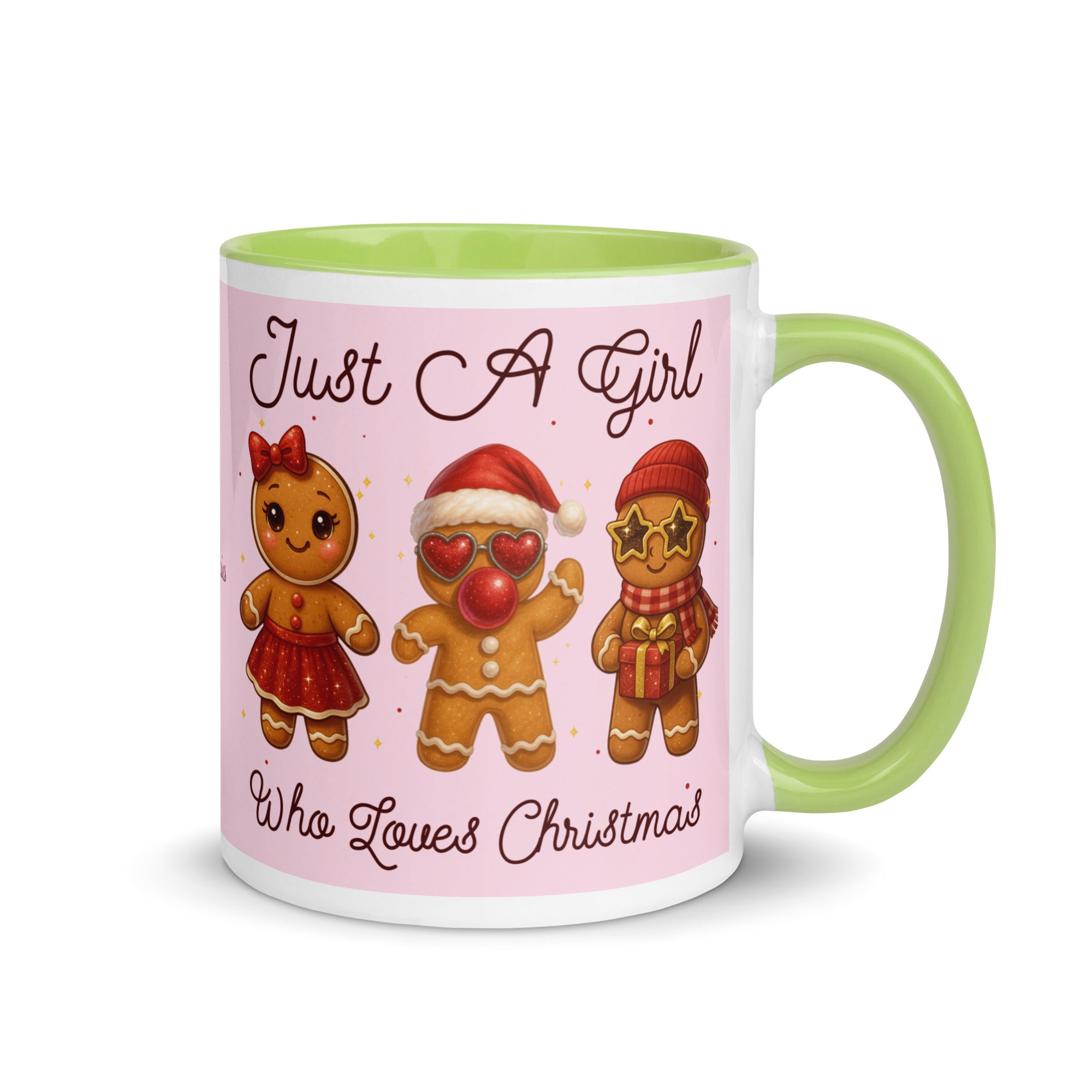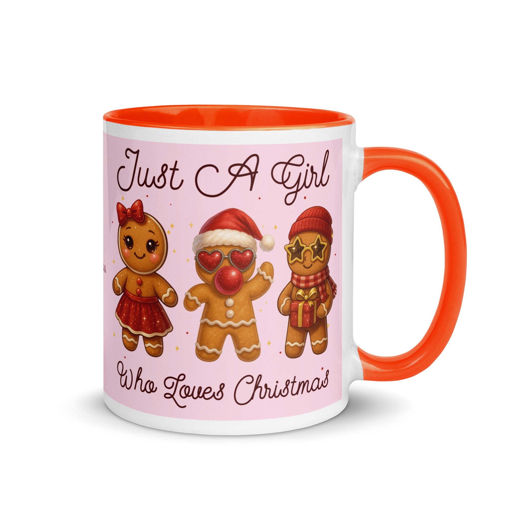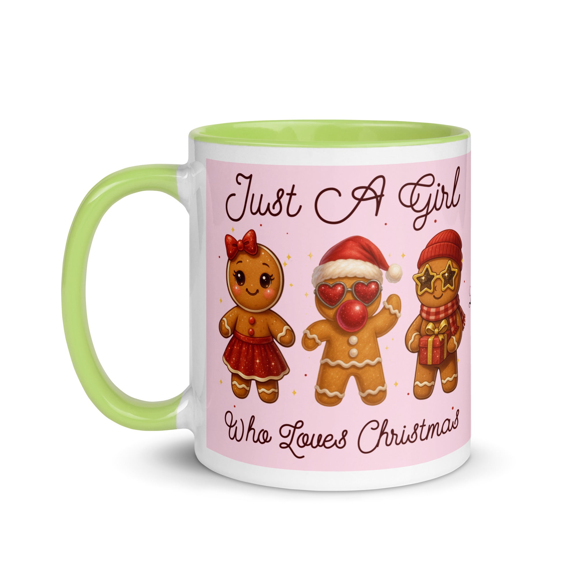 Celebrate the season with this charming mug featuring a soft pink background adorned with festive gingerbread characters. The playful "Just A Girl Who Loves Christmas" message wraps around both sides, making it perfect for holiday coffee breaks or as a thoughtful gift for gingerbread enthusiasts. The colored interior adds a delightful pop of personality to every sip. Ideal for spreading Christmas cheer throughout the season.