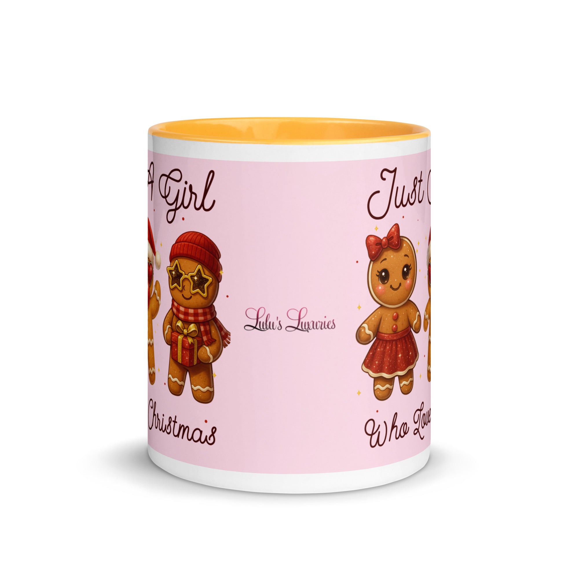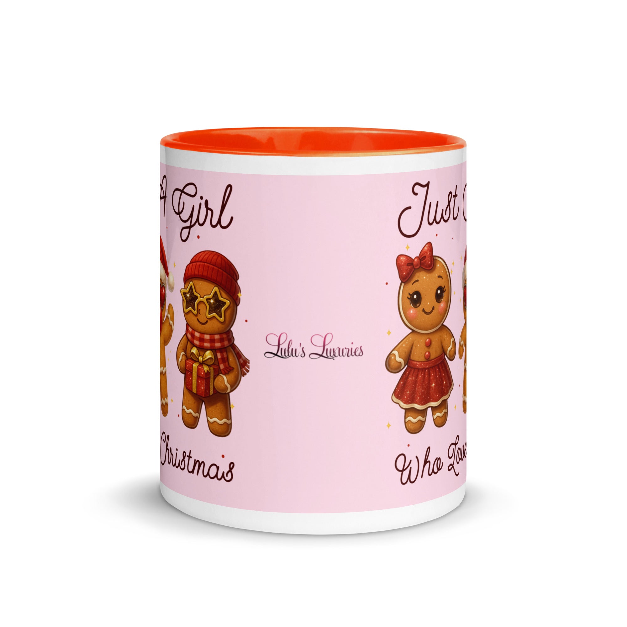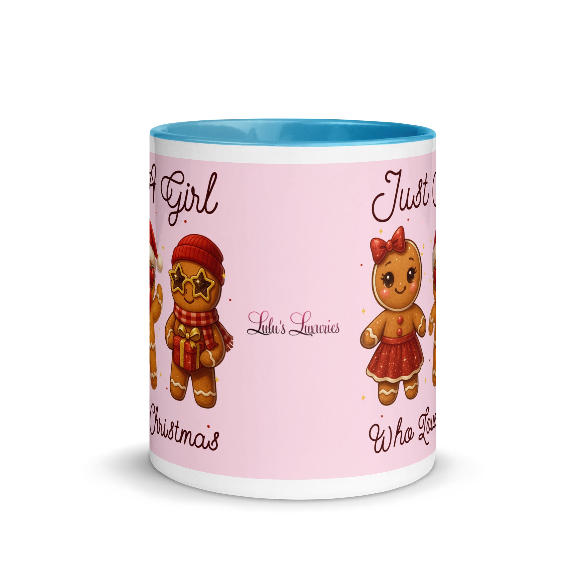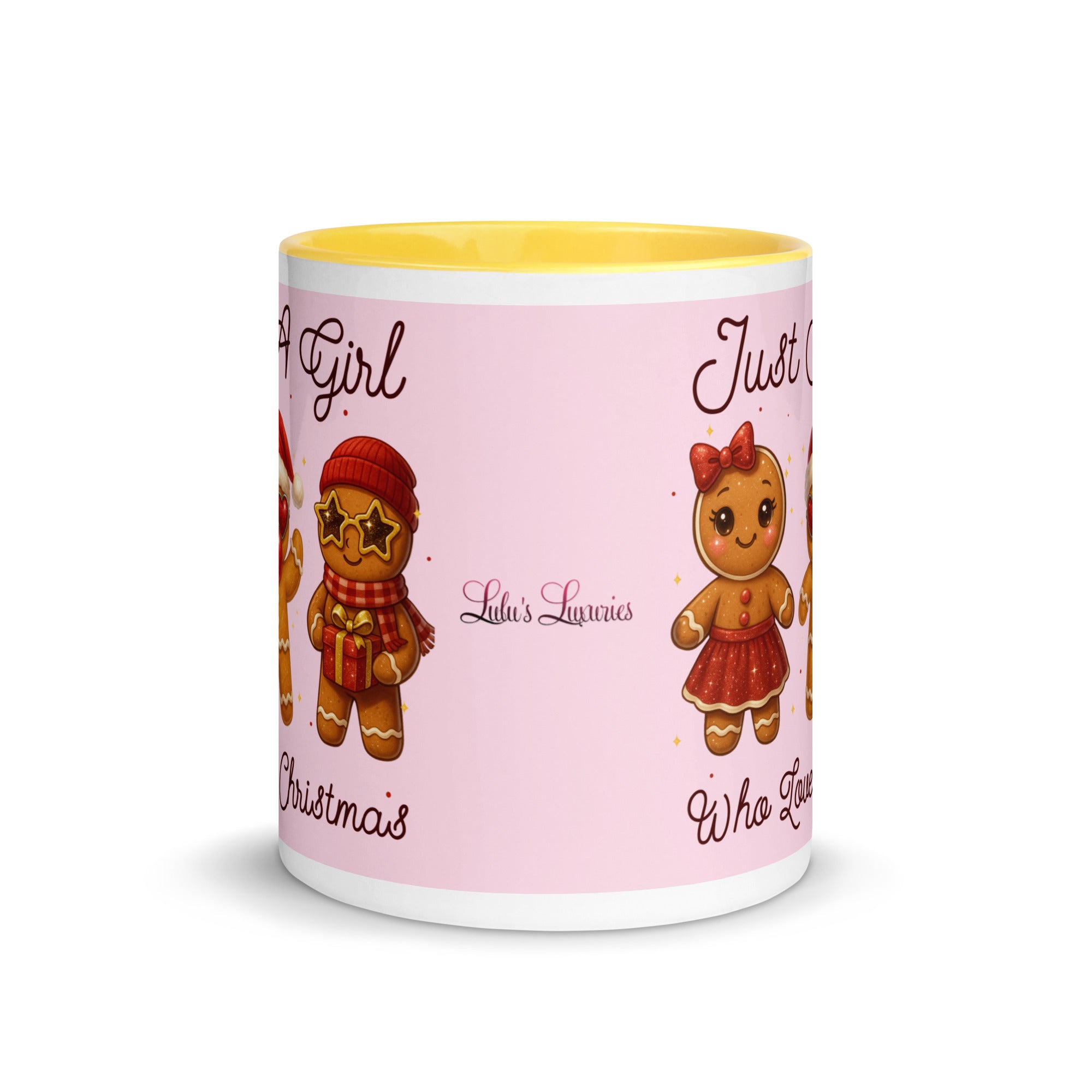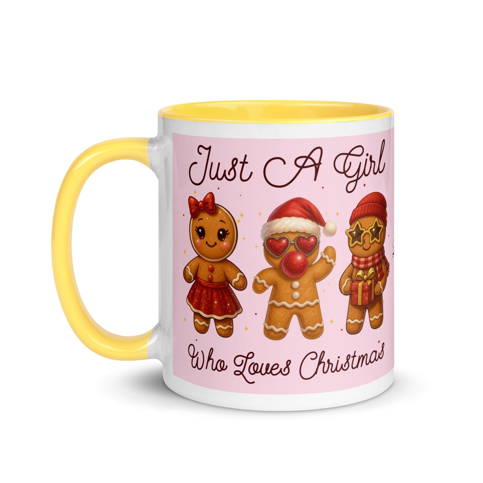 Celebrate the season with this charming mug featuring a soft pink background adorned with festive gingerbread characters. The playful "Just A Girl Who Loves Christmas" message wraps around both sides, making it perfect for holiday coffee breaks or as a thoughtful gift for gingerbread enthusiasts. The colored interior adds a delightful pop of personality to every sip. Ideal for spreading Christmas cheer throughout the season.