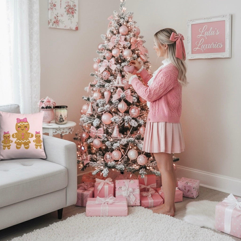 The 'Pink Christmas' Scented Soy Candle brings festive warmth with a delicate aroma perfect for the holiday season. Featuring a charming design of two pink deer facing a snow-covered Christmas tree adorned with pink ribbon bows against a soft pink background, this candle adds both visual elegance and seasonal fragrance to any room. Crafted from natural soy, it offers a clean, even burn that enhances your holiday ambiance with subtle, inviting scent notes. Ideal for creating a cozy and sophisticated holiday atmosphere.