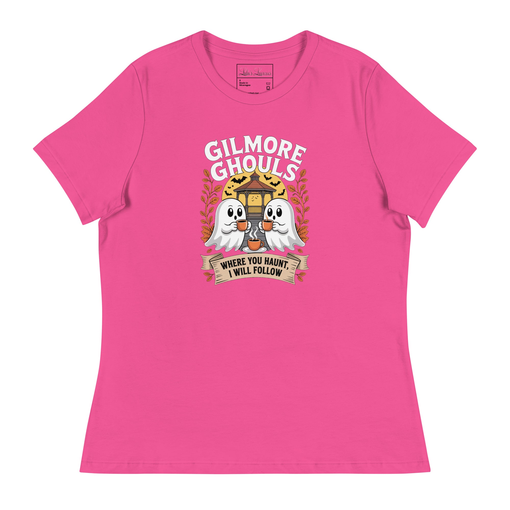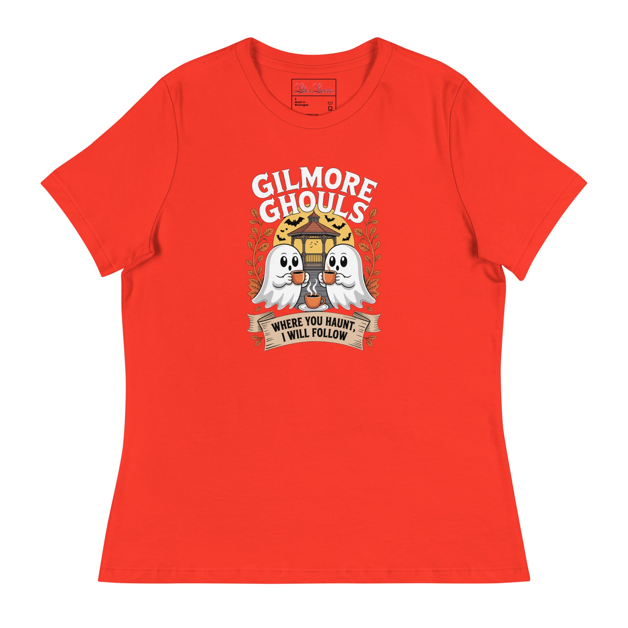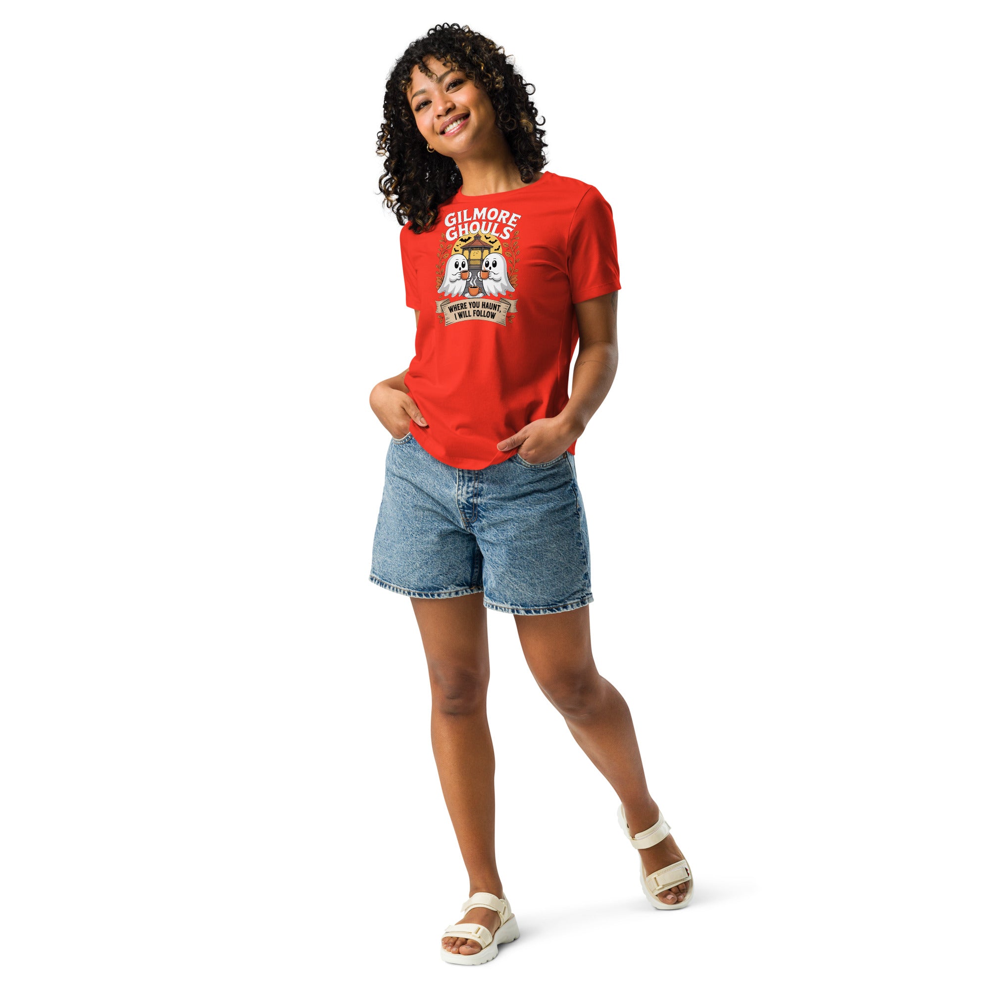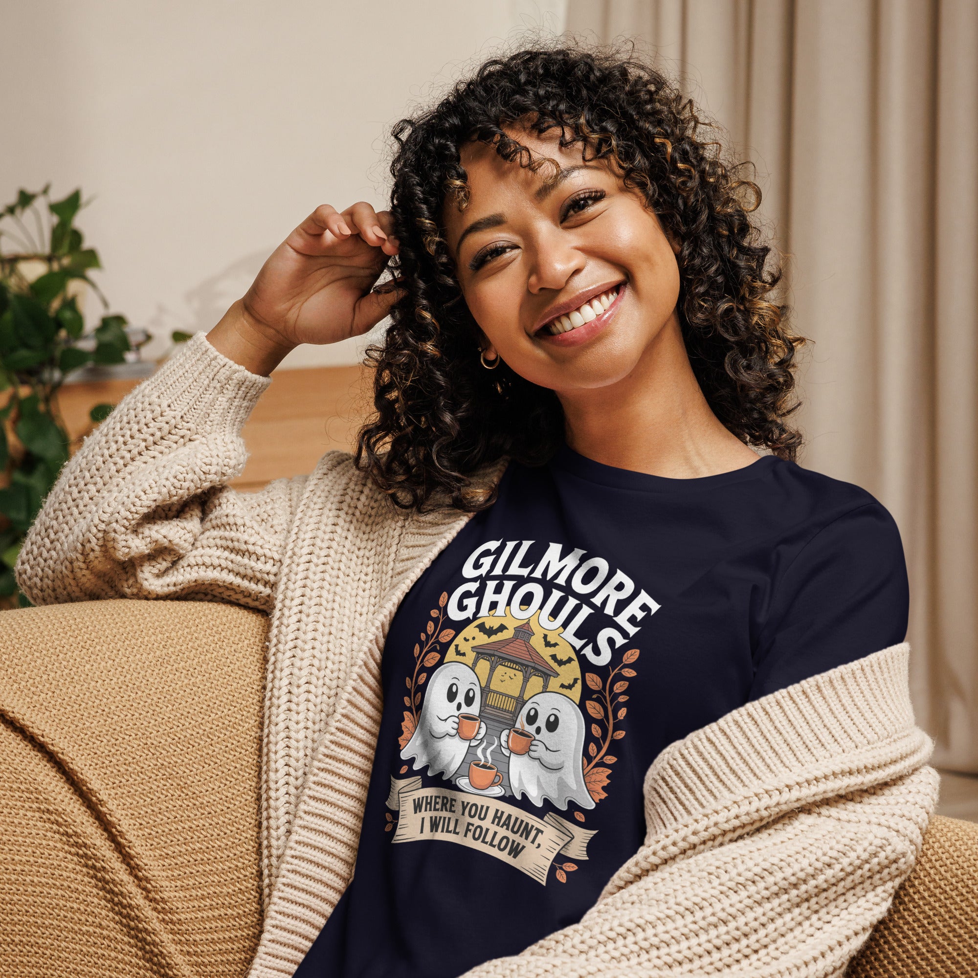 Celebrate your love for Gilmore Girls with the 'Gilmore Ghouls Where You Haunt I Will Follow' Women's Relaxed T-Shirt. This cozy tee, inspired by the show's iconic theme song, offers a relaxed fit perfect for comfortable wear during fall. Whether you're binge-watching your favorite episodes or enjoying crisp autumn days, this shirt is a stylish nod to your fandom. Crafted for fans who appreciate both comfort and subtle pop culture references, it’s an ideal addition to any Gilmore Girls collection.
